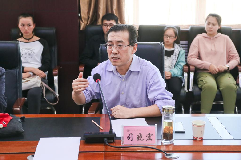 司晓宏在捐赠仪式上代表学校接受捐赠文物并讲话。他对彭曦先生爱校的拳拳之心和无私奉献的精神表示诚挚的感谢和由衷的敬佩。他认为彭曦先生的善行义举体现了对学校、对祖国、对民族文化的真挚热爱。彭曦先生致力于学术,孜孜以求,笔耕不辍,八十余岁高龄还在《光明日报》发表文章,为人谦和低调,从不弄虚作假,做人和治学都是典范,学问和人格是我们大家学习的榜样。文物是一个国家文化血脉的延续,是进行爱国主义教育的载体,学校将有计划地先建文物陈列室,然后建设博物馆,保护好文物,发挥积极作用。