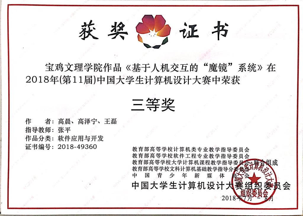 中国计算机设计大赛已成功举办10届。本届比赛由教育部高等学校计算机类教学指导委员会、软件工程教学指导委员会、大学计算机课程教学指导委员会、文科计算机基础教学指导分委会和中国高等教育学会联合主办,从分赛区到全国总决赛,共计2000余支队伍参赛,国内近半数的985、211工程学校以及约65%的国内本科高校都参与到了该项赛事中来,是国内计算机界的顶级赛事。(教务处、计算机学院 文/柳新妮 图/张平)