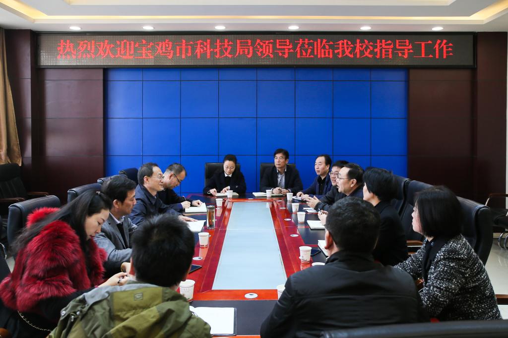 3月22日上午,宝鸡市科技局局长赵一键一行来beat365官网调研指导工作。学校在新校区806会议室召开调研座谈会,会议由党政办公室主任田延峰主持。