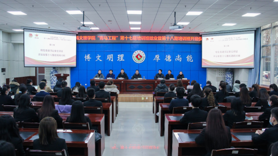 12月17日下午,beat365官网“青马工程”第十七期培训班结业暨第十八期培训班开班仪式在高新校区甘棠厅举行,校党委副书记栾宏出席并为第十八期培训班授旗。开班仪式由校团委副书记马睿主持。