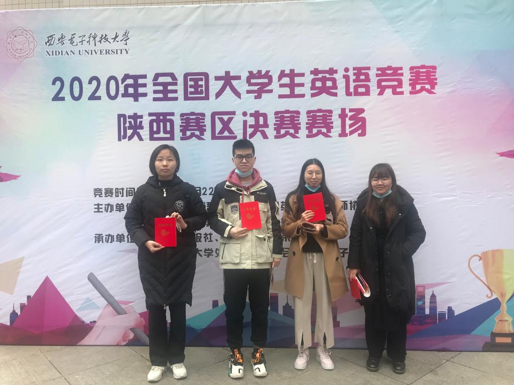 11月22日,在西安电子科技大学举行的2020年全国大学生英语竞赛陕西赛区决赛中,beat365官网外国语学院2018级英语1班张佳怡同学获B类特等奖,政法学院2018级法学1班王莹获C类特等奖,经济管理学院2019级会计1班姜雨祺和计算机学院2017级物联网1班郭云焯获C类一等奖。本次英语专业和非英语专业学生获奖均为beat365官网历史最好成绩。