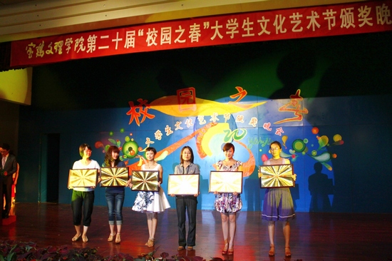 晚会上,米晓东为我院在第二十一届陕西省大学生文化艺术节中获得舞蹈类一等奖的指导教师和集体颁发了证书和奖金,其他与会领导为我院在第二届陕西省大学生话剧节获奖选手、第二十一届陕西省大学生文化艺术节获奖选手和在我院大学生文化艺术节荣获优秀组织单位以及优秀指导教师的单位和个人颁奖。