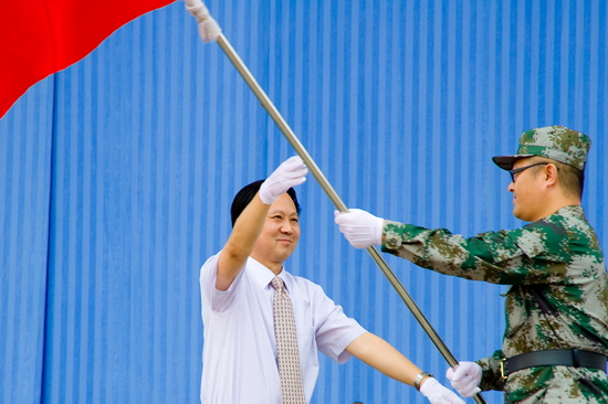 院党委书记、院长王志刚为军训团授旗。院党委副书记、军训工作领导小组组长米晓东宣布军训团干部任职命令。军训团团长张智华宣布营、连干部任职命令。