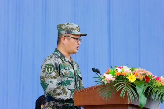 院党委副书记、军训工作领导小组组长米晓东宣布军训团干部任职命令