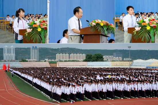 9月7日下午,我院2010级新生开学典礼暨军训动员大会在新校区体育场隆重举行。院党委书记、院长王志刚,院党委副书记、纪委书记米晓东,院党委副书记、工会主席李全武,副院长傅志军、赵荣侠,承担2010级新生军训任务的中国人民解放军96401部队军训团团长张智华以及各系(部)党总支书记、系主任,各职能部门主要负责人,2010级全体新生和承担新生军训任务的96401部队军训团全体官兵参加了会议。王志刚在大会上发表了重要讲话,傅志军主持大会。