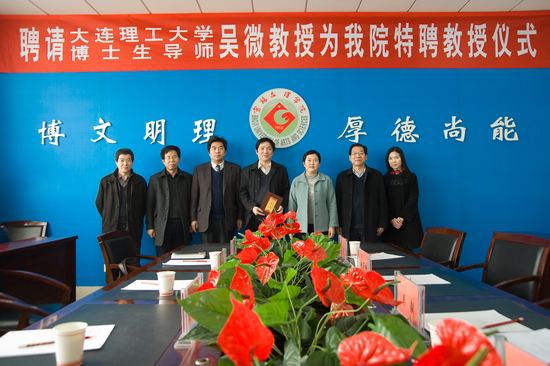 3月4日上午,我院在新校区第一会议室举行聘请大连理工大学博士生导师吴微教授为我院特聘教授仪式。副院长赵荣侠出席会议并讲话,科技处处长吴毅主持聘任仪式。