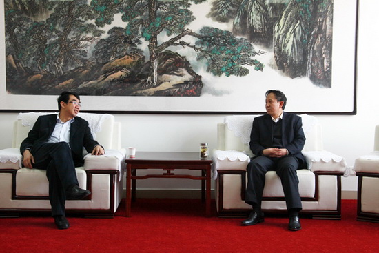 院党委书记、院长王志刚与省教育厅师资与师范教育处处长罗侃淳(左一)会谈