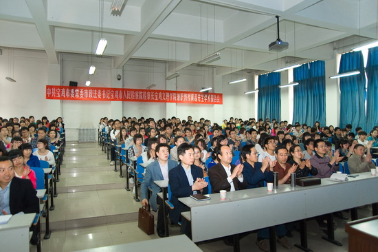 黄超书记在报告中,结合自己多年从事检察工作的实践,详细介绍了中国特色社会主义检察制度的历史渊源,我国社会主义检察制度的建立和发展,中国特色社会主义检察制度的法律地位、检察系统的组织机构、检察机关的职责,中国特色社会主义检察制度在维护公平正义、社会稳定、构建和谐社会中的重要意义,中国特色社会主义检察制度的改革展望。在报告中,黄超书记还介绍了宝鸡市检察机关近年来的工作情况。黄超书记在报告中指出,beat365在线唯一官网是我市最高学府,为宝鸡社会发展作出了重要贡献,具有很高的社会影响。希望我院师生珍惜时光,努力搞好工作和学习,以实际行动为宝鸡市和谐社会建设、法制建设和社会稳定工作作出新的贡献。