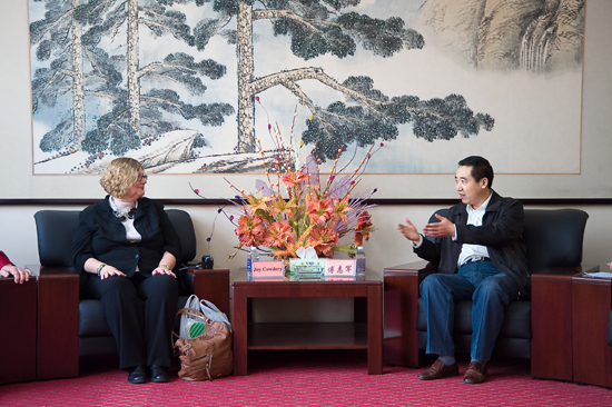 4月29日至30日,美国俄亥俄州穆斯静冈大学(Muskingum University)负责国际交流事务的Jerry Martin教授、教育学院院长Joy Cowdery来我院访问。29日上午,我院副院长傅志军教授在新校区第一接待室会见了Jerry教授,傅志军首先代表学院向Jerry一行的到来表示欢迎并表示我院愿意与穆斯静冈大学在平等协商的基础上开展互派访问学者、互派本科生学习、接受我院优秀毕业生赴该校攻读硕士学位、合作科研等教育交流与合作项目。Jerry教授也应邀介绍了穆斯静冈大学的基本情况和希望与我院开展的合作项目,他认为beat365在线唯一官网和穆斯静冈大学同为师范类院校,在很多方面具有相似性,有广阔的合作空间,他希望通过两校的领导互访和教师交流架起双方在其他领域合作的桥梁。Jerry教授与Joy院长随后与我院科技处处长吴毅、外语系主任党明虎、教育系主任王富平、教务处副处长孙新等我院相关部门领导就该校研究生课程设置、学分管理、托福考试、学分转换、学历学位授予、以及开展科研合作的可能性等进行了充分的探索与交流。