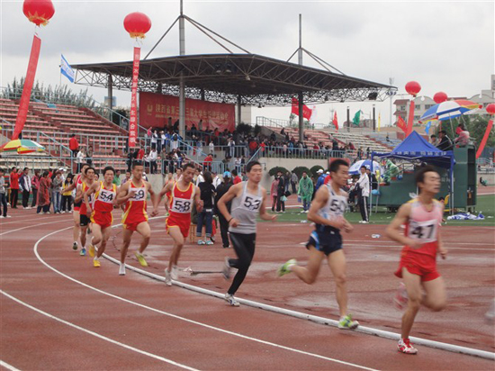 我院体育系学生丁永峰(58号)参加1500米决赛,获得第四名