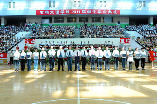 6月27日上午,我院2011届学生毕业典礼在宝鸡市体育馆隆重举行。宝鸡市体育局局长李富生应邀出席毕业典礼。院党委书记、院长王志刚,院党委副书记米晓东、李全武,副院长傅志军、王普藩、赵荣侠等出席毕业典礼。各部门、各单位负责人、全体毕业生及在校生代表共4000多人参加了毕业典礼。毕业典礼由傅志军主持。