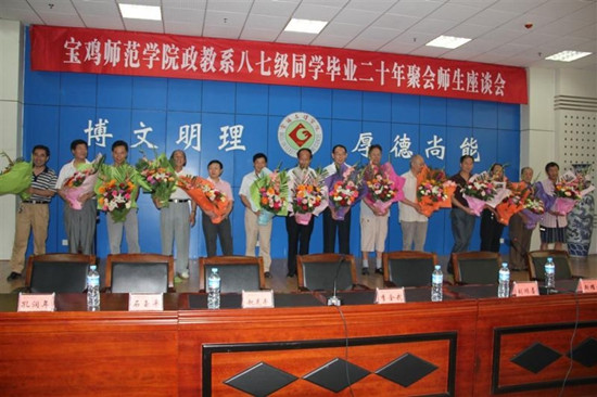 座谈会上,隆重举行了87级校友向政法系赠送礼品和向全体老师献花仪式,表达校友们对母校和老师的感激之情。校友代表、“政八七同学毕业二十年聚会筹委会”秘书长、政法系王晓敏教授介绍了筹备工作等情况。校友代表、班长丁永清、王进红同学作了主题发言,张帆、刘欣、贺治杰、卢蕊英等校友纷纷发言,感谢母校的培养和老师们的教诲,希望老师们工作愉快、身体健康,祝愿母校的事业蒸蒸日上、欣欣向荣,早日建成并更名为宝鸡大学!