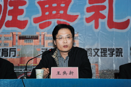 王奂新代表省教育厅对培训班的顺利开班表示祝贺!同时传达了省教育厅张雄强副厅长在陕西省2011年“国培计划”置换脱产研修项目开班典礼上的讲话精神。一是要紧抓机遇,始终把教师队伍建设作为全省教育事业发展最重要的基础工作;二是要积极推进“国培计划”和省级培训的实施,大力开展中小学教师培训工作;三是要齐心协力,把“置换脱产研修项目”办成国培计划和省级培训项目的典范。并且希望各位老师珍惜机会,潜心研修;承办院校严格管理,热情服务;积极倡导并创造生动活泼的学风,确保“国培计划”项目的质量和效果。