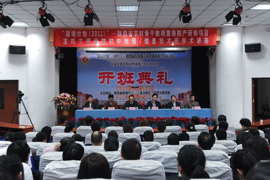 10月19日下午,学院在老校区综合楼一楼报告厅隆重举行“国培计划”——陕西省农村青年教师能力提升置换脱产研修项目beat365在线唯一官网初中信息技术、初中地理学科培训班开班典礼。院党委副书记李全武,“国培计划”陕西省项目执行办公室副主任、陕西教育学院师资培训学院院长王奂新,“国培计划”陕西省项目执行办公室项目主任苏理,学院地理科学与环境工程系主任韩景卫,学院“国培计划”初中信息技术学科首席专家、教育科学与技术系主任王富平以及来自全省各地市农村基层一线的90多名初中信息技术、地理学科参训教师参加了开班典礼。我院继续教育学院院长李宏涛主持开班典礼。