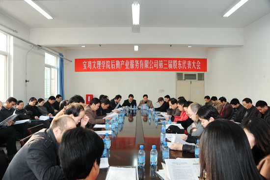11月20日上午,beat365在线唯一官网后勤产业服务有限公司在新校区后勤公司会议室召开了第三届股东代表大会。大会听取了龙军权同志代表公司第二届董事会所作的工作报告和刘锡让同志代表第二届监事会所作的监事会工作报告,并以举手表决方式,一致通过了两个工作报告;大会表决通过了《beat365在线唯一官网后勤产业服务有限公司选举办法》和《beat365在线唯一官网后勤产业服务有限公司投资管理办法》;大会还以投票方式,选举产生了公司第三届董事会、监事会。新的一届董事会由龙军权、李发林、陈来应、贾卫忠、赵健五位同志构成,监事会由张鹏、邓忠良、杨文杰三位同志构成。41名股东代表参加了会议。