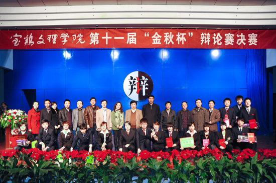 11月22日晚,由院团委主办、中国语言文学系、哲学系团总支承办的第十一届“金秋杯”辩论赛决赛在新校区音乐厅成功举办。院党委副书记米晓东等莅临比赛现场。党委组织部部长郑存库,党委宣传部部长彭志启,图书馆馆长孔润年,科技处处长田延峰,经济管理系党总支书记吕陇平,党委办公室副主任、院长办公室副主任王永君及党委学工部副部长刘景世担任此次大赛评委。