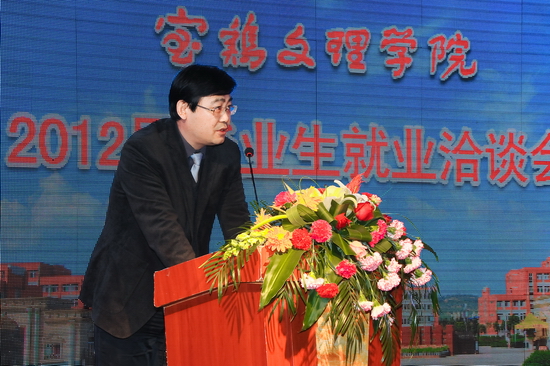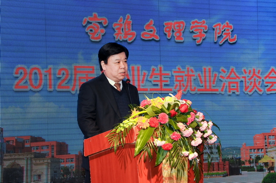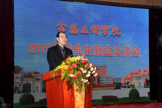 2日晚,学院在万利酒店举行欢迎宴会,省教育厅学生处处长叶军致辞,院党委书记、院长王志刚致欢迎辞,党委副书记米晓东主持欢迎晚宴。院党委副书记李全武,副院长傅志军、赵荣侠,省教育厅学生处副处长韩公营及西安市教育局、宝鸡市教育局、宝鸡市人社局、合阳县教育局、宝鸡市人才交流中心的领导出席欢迎宴会。就业中心主任李周让通报了2012届毕业生基本情况和洽谈会准备情况。王志刚在讲话中指出:本届毕业生是学院荣获“教育部普通高校本科教学工作水平评估优秀学校”后招收的第二届学生,生源质量高,整体基础好;在校期间,正值学院实施新的人才培养方案,构建持续提高教育教学质量长效机制、硕士学位授权单位立项建设和全面实施大学文化建设的关键时期,良好的办学条件和浓厚的大学文化氛围使得这一届学生品德优良,具有强烈的社会责任感;基础扎实,具有完善合理的知识结构;学风优良,具有较强的创新精神和实践能力;综合素质较高,具有较强的社会适应能力。学院为洽谈会推荐的毕业生在专业、人数、质量等方面能够满足用人单位的需求。他衷心希望各用人单位能够选聘到自己满意的毕业生。