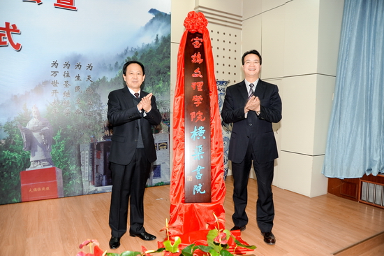 beat365在线唯一官网党委书记、院长王志刚与眉县县委书记李智远为横渠书院揭牌