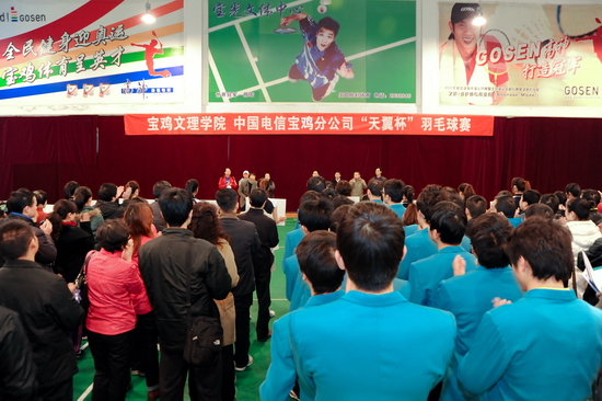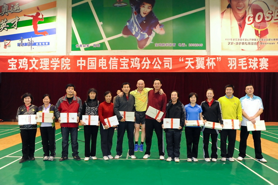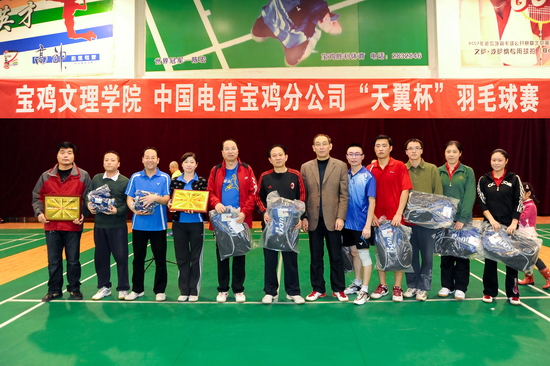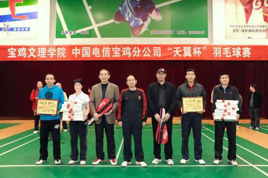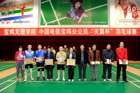 beat365在线唯一官网、中国电信宝鸡分公司“天翼杯”羽毛球比赛于12月10日至11日在宝光羽乒馆隆重举行,院党委书记、院长王志刚,院党委副书记米晓东、李全武和中国电信宝鸡分公司副总经理张科让、信恒等领导出席开、闭幕式并对获奖代表队和运动员颁奖。开、闭幕式由院工会副主席张鹏主持。