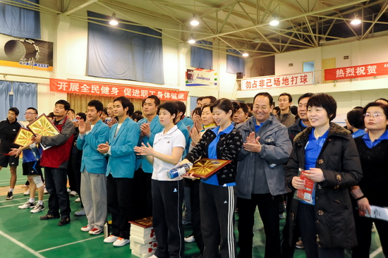 经过两天紧张激烈的角逐,中国电信宝鸡分公司荣获团体第一名;后勤集团分会、外语系分会、化学系分会、物理系分会、党群一分会分别荣获团体第二名至第六名;体育系分会获团体并列第一名。另有16对选手分获处级干部组双打、男子双打、女子双打、混合双打前三名。闭幕式上,院工会副主席郭俊理对赛事组委会所做的工作和参赛队员的拼搏精神、团队精神、协作精神给予高度评价和充分的肯定。