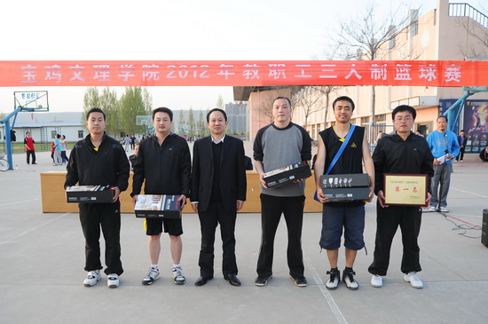 我院2012年教职工三人制篮球赛于4月7日在新校区篮球场隆重举行,院党委书记、院长王志刚,院党委副书记、工会主席李全武等领导出席开、闭幕式并对获奖代表队颁奖。院工会副主席张鹏主持开幕式。