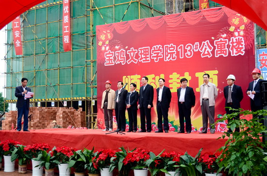 13号学生公寓楼工程建设领导小组、相关部门负责人以及后勤公司董事会、监事会成员,公司经营班子成员,泽润房地产公司、永明监理、汕头建总负责人和相关技术人员等参加封顶仪式。(后勤公司供稿)