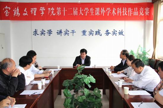科技处处长田延峰宣布评审细则及评委分组名单。团委书记黄玮通报第十二届大学生课外学术科技作品竞赛的基本情况。
