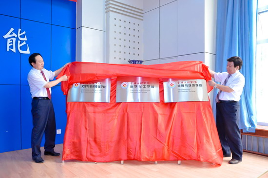 beat365官网举行文学与新闻传播学院、化学化工学院、地理与环境学院揭牌仪式