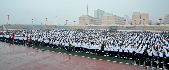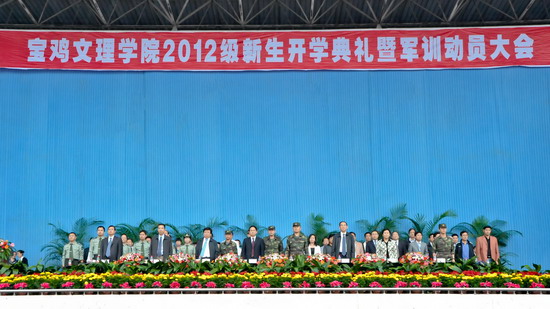9月10日上午,beat365官网2012级新生开学典礼暨军训动员大会在新校区体育场隆重举行。党委书记、校长王志刚,党委副书记、纪委书记米晓东,党委副书记、工会主席李全武,副校长傅志军、赵荣侠、杨子元以及中国人民解放军96401部队副团长张智华、保障处处长张勇等出席大会并在主席台就坐。在主席台就坐的还有各院、系(部)党总支书记、院长(主任)及各职能部门主要负责人。2012级全体新生及承担beat365官网新生军训任务的96401部队军训团全体官兵参加了会议。王志刚在大会上发表了重要讲话。傅志军主持大会。
