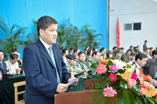 校党委副书记、军训工作领导小组组长米晓东在大会上宣布了军训团干部任职命令,军训团团长张智华宣布了营、连干部任职命令,党委书记、校长王志刚为军训团授旗。