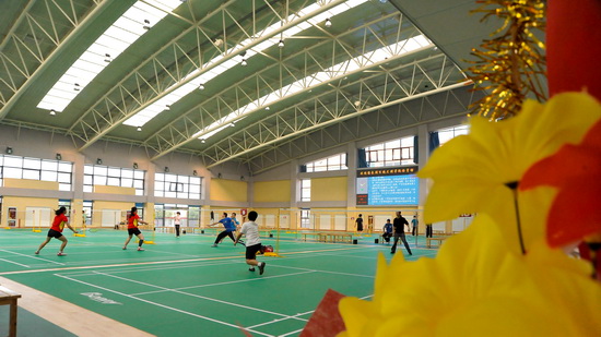 为了树立全民健身、终身体育的理念,吸引师生员工到体育馆利用业余时间坚持体育锻炼,在体育馆落成后,学校在“双节”期间(10月1日—6日)对全校师生免费开放。学校将体育馆15块羽毛球场地和20块乒乓球场地根据各工会分会师生人数进行了划分。要求各分会在“双节”期间指派专人负责并积极组织参加各项体育活动,确保场地得到有效使用。