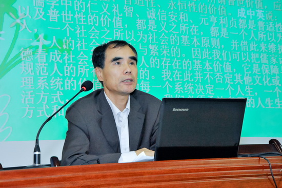 报告会上,韩星教授从时下对普世价值的讨论切入,通过对儒家仁爱的层次性的分析,认为“仁者爱人”本质上是一种人道思想。他将儒家的仁爱思想与墨家、道家以及佛教、基督教和伊斯兰教的相关思想进行充分比较,提出儒家仁爱思想能够成为普世价值的观点。最后,韩教授指出儒家仁爱思想在当今世界越来越显现出它的独特智慧和普世价值,值得我们重视和弘扬光大。韩星教授的报告内容丰富,思辨缜密,史料翔实,理论联系实际,深入浅出,富有启发性,开拓了学生的视野和思维,受到师生好评。