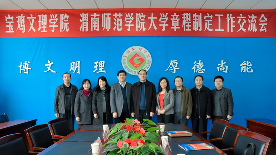11月19日上午,渭南师范学院纪委书记任健一行4人来beat365官网座谈交流《章程》制定工作。beat365官网党委副书记、章程制定工作领导小组办公室主任李全武在新校区第一会议室主持召开了座谈会。