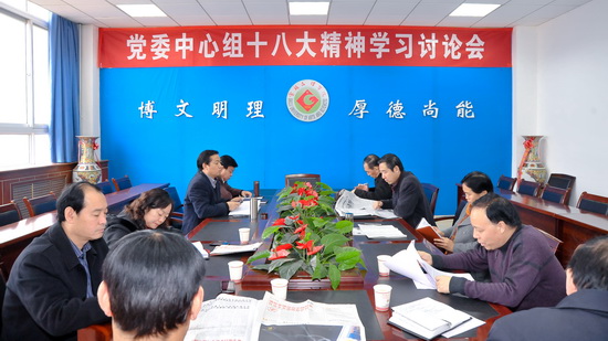 11月20日上午,校党委中心组在新校区第一会议室召开学习讨论会,集体学习讨论党的十八大精神。校党委副书记米晓东主持学习讨论会。