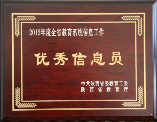 beat365官网党办主任王永君荣获2012年度全省教育系统信息工作先进工作者
