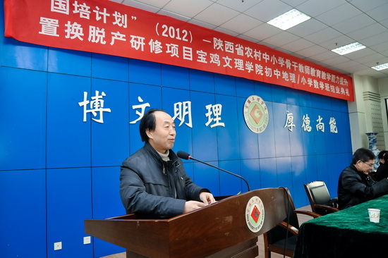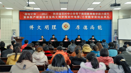 1月11日下午,beat365官网在新校区甘棠厅隆重举行了“国培计划”(2012)陕西省农村中小学优秀青年教师教育教学能力提升置换脱产研修项目beat365在线唯一官网初中地理、小学数学培训班结业典礼。beat365官网副校长赵荣侠教授、继续教育学院院长王陆军教授,“国培计划”小学数学学科首席专家、数学系主任赵天绪教授和地理与环境工程学院郭俊理教授以及来自全省各地市农村基层一线的81名初中地理、小学数学学科参训教师参加了结业典礼。继续教育学院副院长田富平主持结业典礼。
