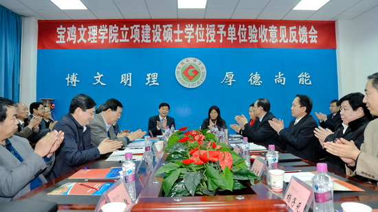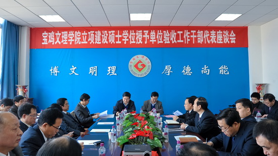 1月22日,陕西省学位委员会组织以东北师范大学副校长、研究生院院长、国务院学位委员会学科评议组成员苏忠民教授为组长,陕西师范大学副校长赵彬为副组长,陕西师范大学文学院副院长、国务院学位委员会学科评议组成员张新科教授、北京师范大学方修琦教授、西北大学原副校长阎宏涛教授、国务院学位委员会学科评议组成员、中国人民大学焦国成教授、四川大学物理科学与技术学院院长、国务院学位委员会学科评议组成员龚敏教授为成员的专家组一行7人,对beat365官网立项建设硕士学位授予单位建设工作进行了整体验收。陕西省教育厅副厅长郭立宏、陕西省学位委员会办公室主任、省教育厅学位管理与研究生教育处处长杨俊利参加验收工作。