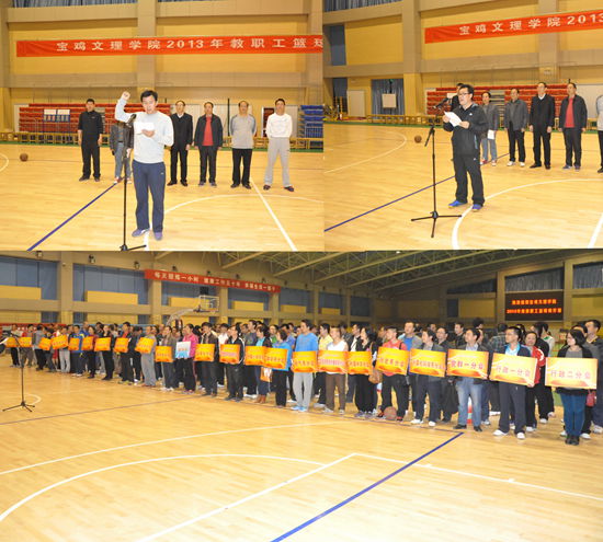 2013年教职工篮球赛于4月11日至13日在新校区体育馆隆重举行,校党委书记、校长王志刚,校党委副书记、工会主席李全武等领导出席开、闭幕式并对获奖代表队颁奖。校工会副主席郭俊理主持开幕式。