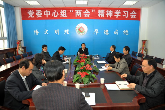 3月19日上午,校党委中心学习组在新校区第一会议室举行学习会,集体学习2013年全国“两会”精神,并对beat365官网学习贯彻落实“两会”精神作了安排。校党委书记、校长王志刚主持学习会。