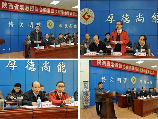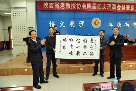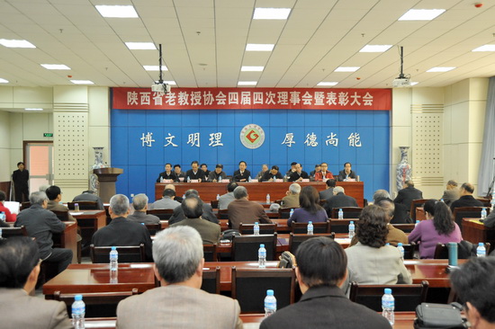 4月23日,陕西省老教授协会四届四次理事会暨表彰大会在beat365官网甘棠厅隆重举行,省委老干局老干部发挥作用指导中心主任张伟、陕西省老科学技术工作者协会副会长刘万兴、陕西省老教授协会会长胡致本、陕西省老教授协会常务副会长吕九如以及来自我省各高校的离退休老领导、老教授80余人参加了大会。省教育厅政策法规处专门向会议发来了贺信。beat365官网党委书记、校长王志刚,党委副书记李全武出席开幕大会。会议由省老教授协会副会长李靖主持。