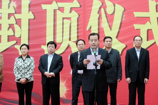 陕西中兴国防工业工程咨询有限公司宝鸡分公司经理简康明、宝鸡市第二建筑工程有限责任公司总经理刘京燕、宝鸡市明达住宅建筑有限公司党委书记魏高杰分别代表监理方和施工方单位讲话,他们表示一定继续努力,加强监管,保质保量,按时完成施工任务。