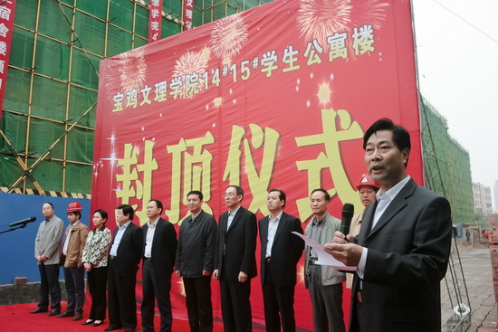 14、15号学生公寓楼工程建设领导小组、相关部门负责人以及后勤公司董事会、监事会成员,公司经营班子成员,宝鸡泽润房地产开发公司、陕西中兴国防工业工程咨询有限公司、宝鸡市第二建筑工程有限责任公司、宝鸡市明达住宅建筑有限公司负责人和相关技术人员等参加封顶仪式。(后勤公司供稿)