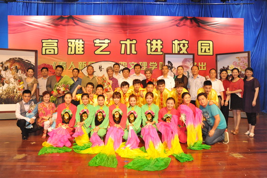 演出前,校党委副书记米晓东亲切接见了参加演出的主要艺术家和青年演员代表,向他们介绍了学校发展情况。(校团委供稿)