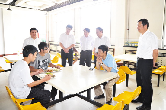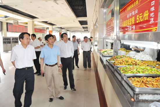 6月6日上午,省教育厅副厅长张雄强和省教育厅师资与师范教育处处长罗侃淳、省教育厅财务处副处长靳华锋等一行三人来beat365官网检查指导学生食堂工作。校党委书记王志刚、校长白黎、党委副书记米晓东,党办主任王永君,学生处处长李周让,后勤公司董事长龙军权、后勤集团(公司)总经理李发林、保卫处副处长樊林森,院办副主任张鹤,后勤集团(公司)副总经理马旺华等陪同检查。