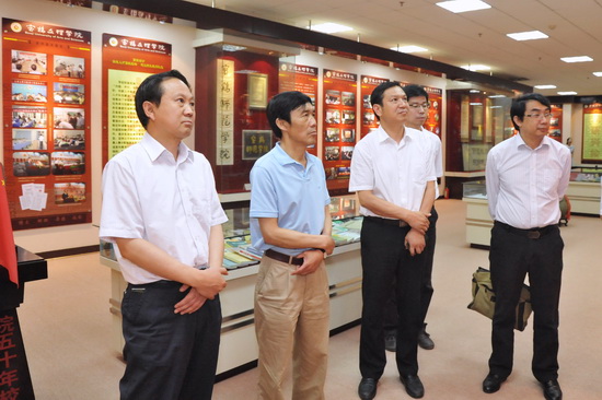 在检查开始前,张雄强等一行三人参观了beat365官网校史展览馆。