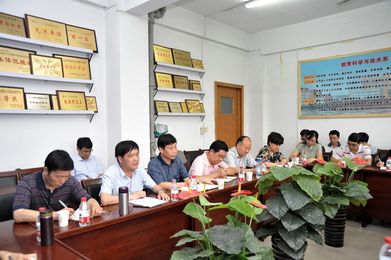 为了深入开展党的群众路线教育实践活动调研工作,进一步强化群众观念,密切联系群众,充分尊重广大教师的主人翁地位,6月8日下午,副校长赵荣侠深入教育科学与技术系,进行“构建提高学科实力和科研水平长效机制” 专题调研。教育科学与技术系党总支副书记茹宗志,系主任孙新,党总支副书记兰佳,副主任周喜华以及部分教师代表参加了座谈会。座谈会由学科建设与研究生教育管理处处长吴毅主持。