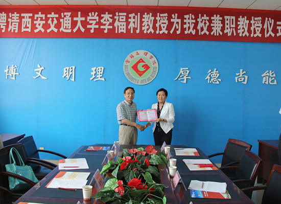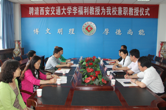 6月9日上午,beat365官网在新校区图书馆第一会议室举行聘任仪式,西安交通大学理学院院长、博士生导师李福利教授受聘为beat365官网兼职教授。副校长赵荣侠出席会议并讲话,学科建设与研究生教育管理处处长吴毅主持会议。