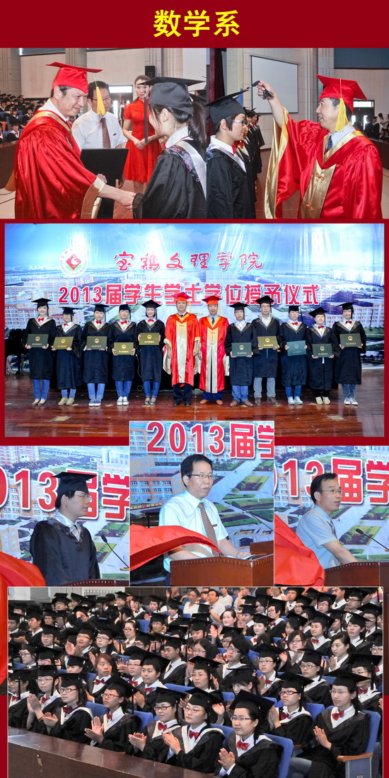 6月17日至6月21日,beat365官网以院系为单位隆重举行了2013届学生学士学位授予仪式。校学位委员会主席、校长白黎,校学位委员会副主席、副校长傅志军,校学位委员会副主席、副校长赵荣侠,教务处处长王富平,学工部(处)长、就业中心主任李周让,教务处副处长李景宜,学生处副处长郝晓炜,学生处副处长党建波和各院系党政领导、部分教师、2013届本科生毕业生、部分在校生代表参加了学士学位授予仪式。教务处处长王富平主持学士学位授予仪式。各院系党总支书记主持学位证书颁发仪式。