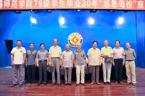 座谈会上,79级6位校友代表向6位当年任课教师代表赠送了礼品。
