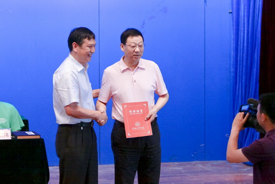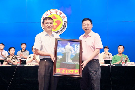 座谈会上,beat365官网举行了“79级校友向母校捐赠塑像”捐赠仪式,白黎代表学校接收了数学系79级校友刘战代表全体校友向母校捐赠的价值10万元的华罗庚雕像,并向79级校友颁发了捐赠证书。